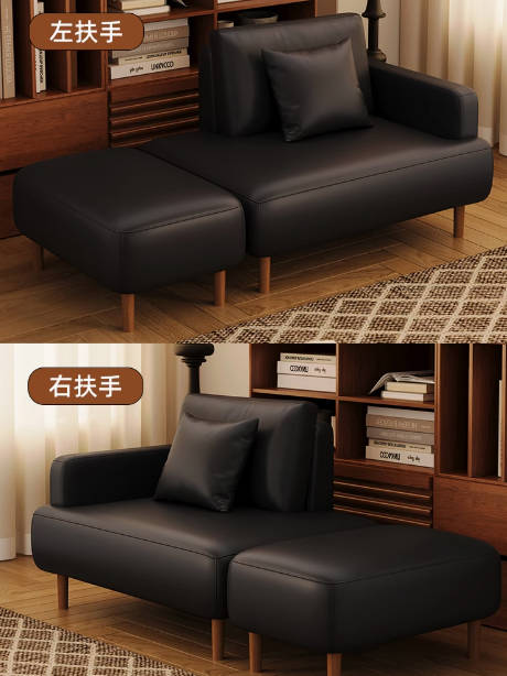 窄款沙发小户型小沙发双人黑色可睡可躺懒人不占空间公寓贵妃椅