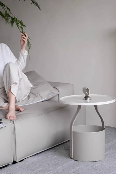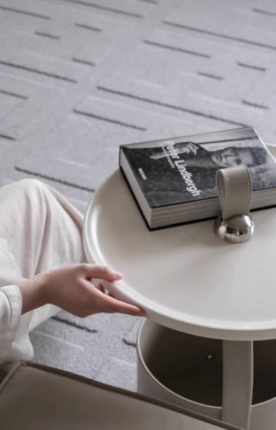 若奈限定冰川灰!HERM@S创意艺术手工马鞍皮沙发边几轻奢手拎茶几