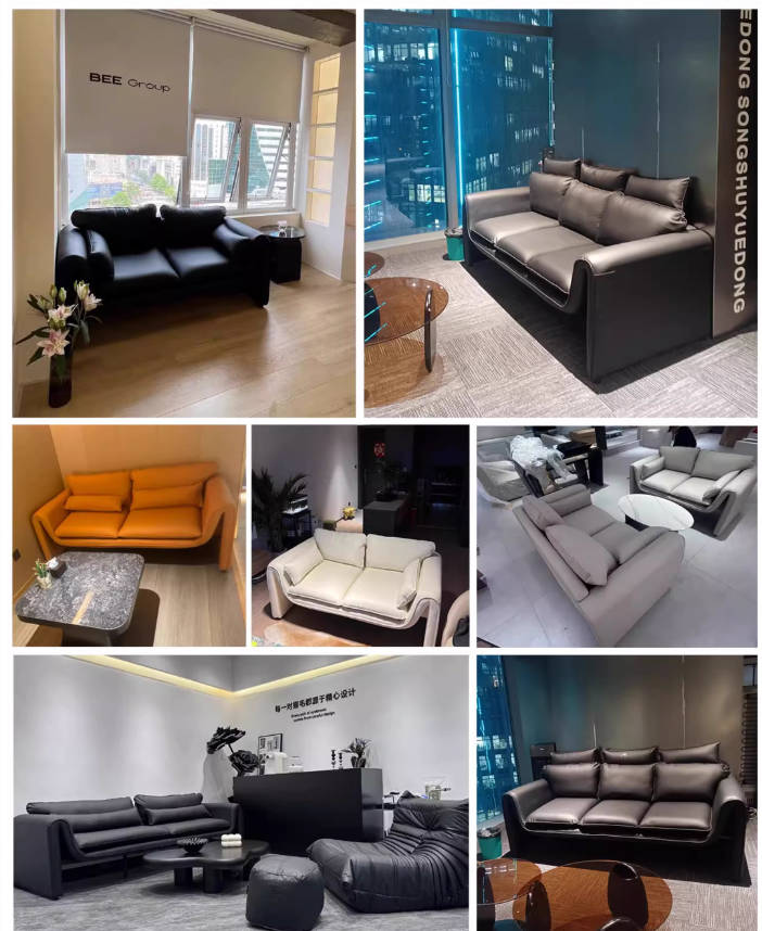 沙发小户型客厅简易双人轻奢网红三人黑色皮艺意式极简沙发组合