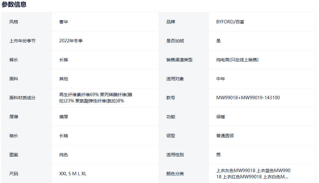 Byford百富莫代尔细绒磨毛加倍速暖柔软厚保暖内衣裤MW9901819