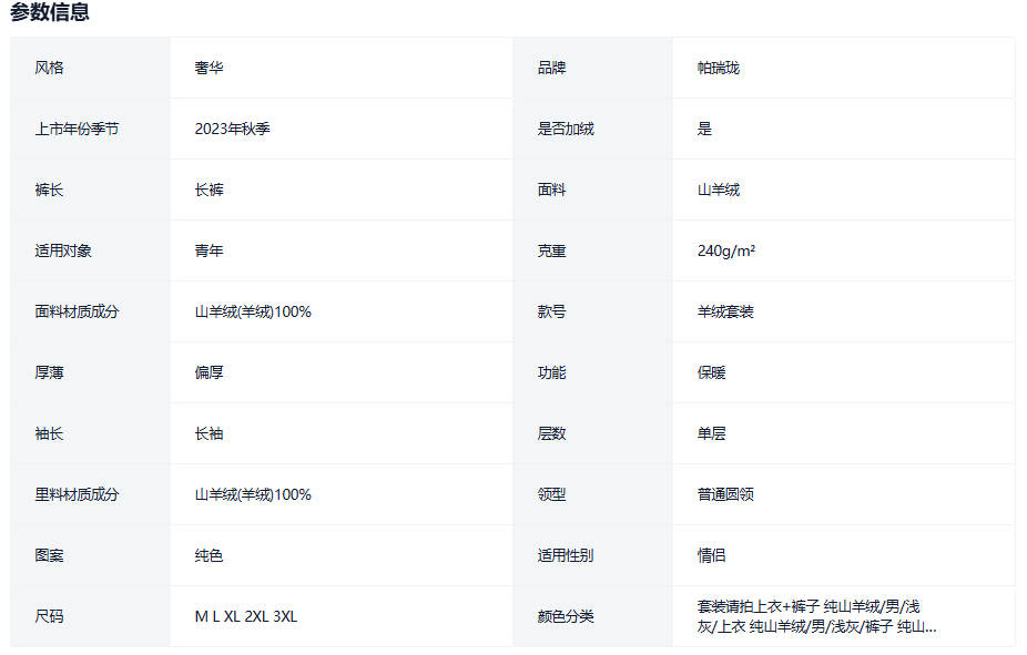 100%纯山羊绒保暖内衣套装男冬季女士羊绒上衣裤子加厚PARALEU