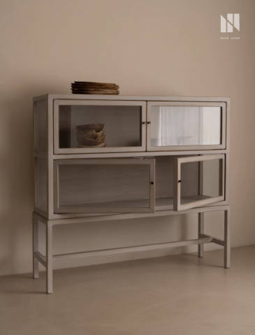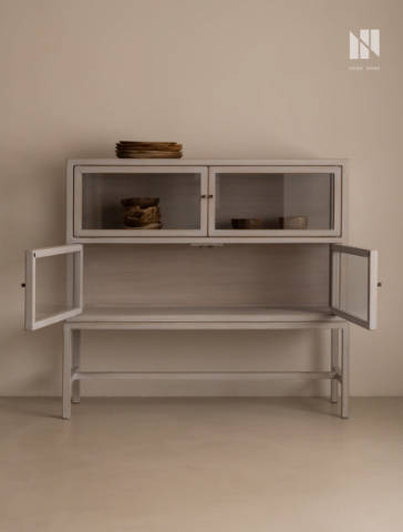 弄居 复古简约实木书柜家用陈列柜现代玻璃柜子书房手办柜首饰柜