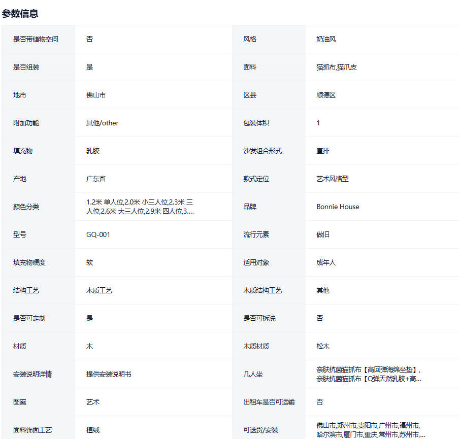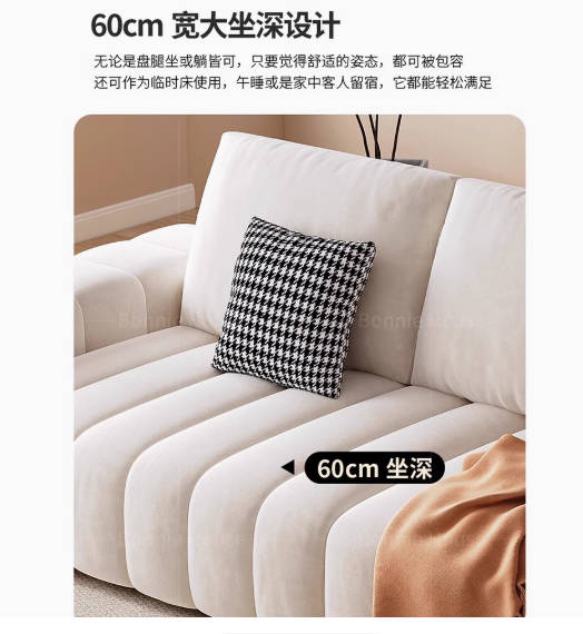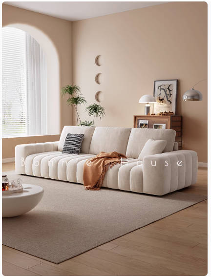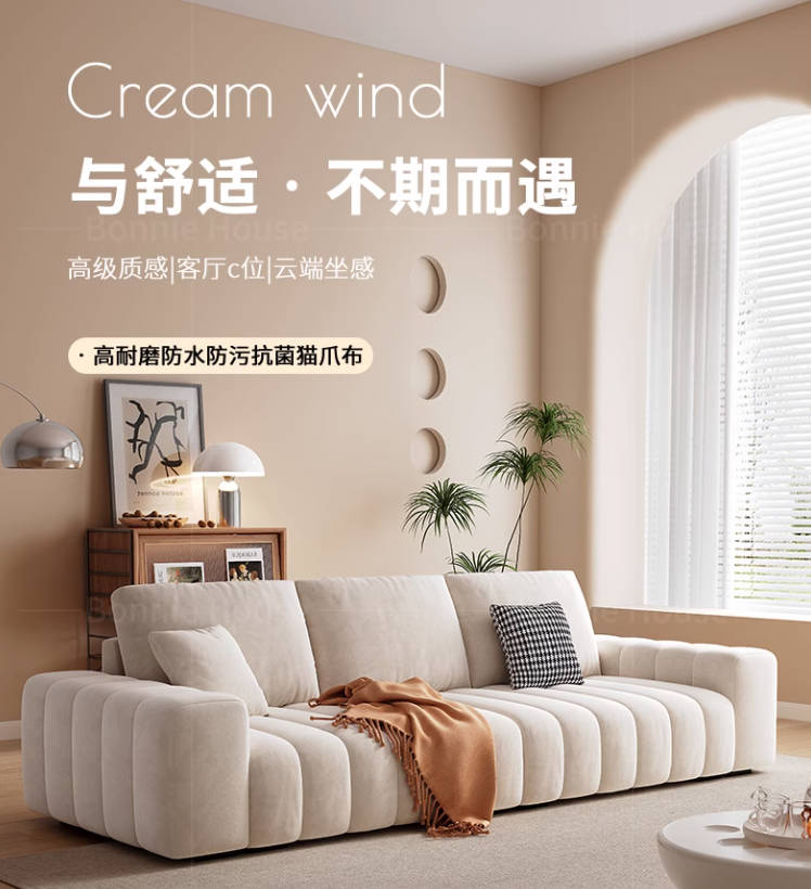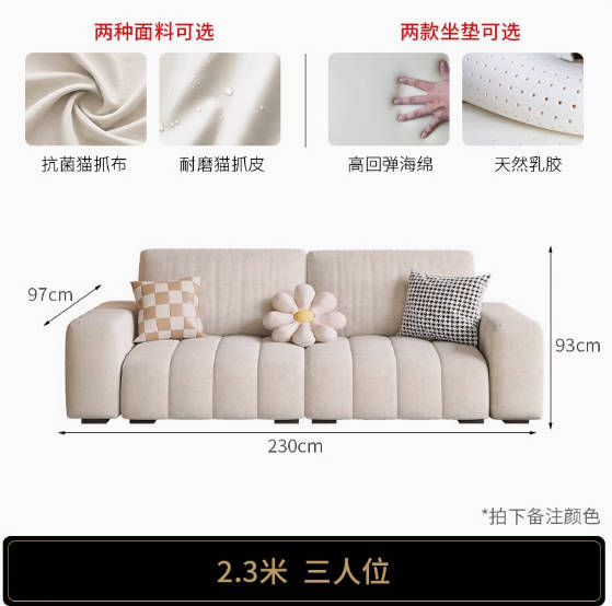 奶油风钢琴键现代简约小户型客厅直排三人位豆腐块猫抓布艺沙发