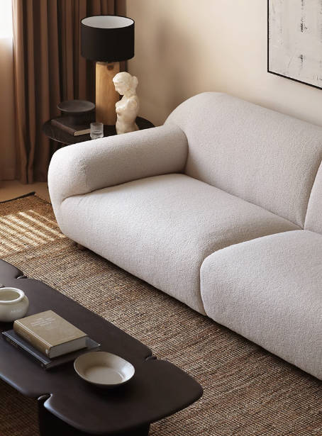 北欧表情NORHOR/法式奶油风侘寂/CRUZ羊羔绒布艺沙发/三人位奶白