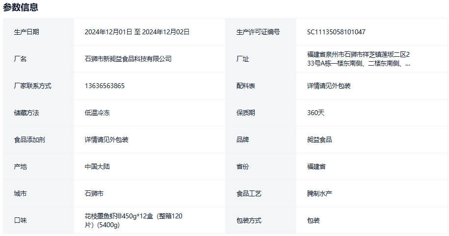 昶益食品花枝虾排450g12盒箱装裹粉墨鱼手工虾饼