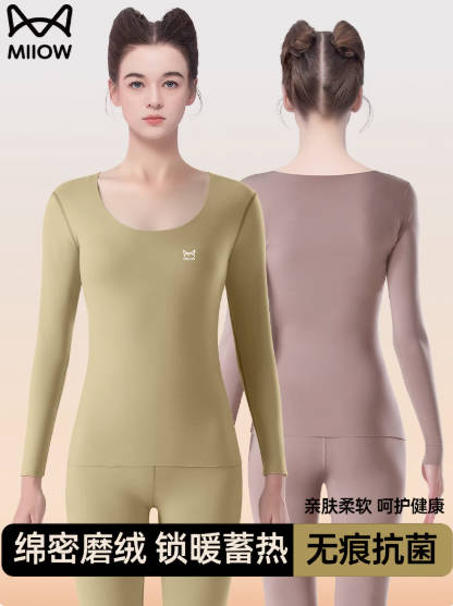 猫人保暖内衣男士无痕抗菌发热加厚加绒德情侣秋衣裤秋裤套装冬季