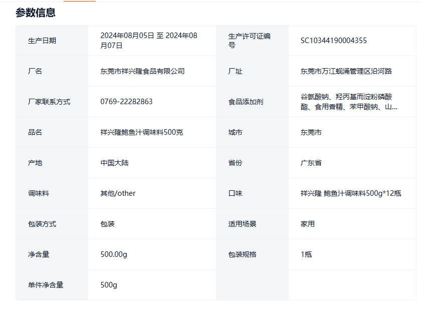 祥兴隆 鲍鱼汁调味料500g12瓶箱 酱鲍汁海鲜意面手抓饼调料鲜美