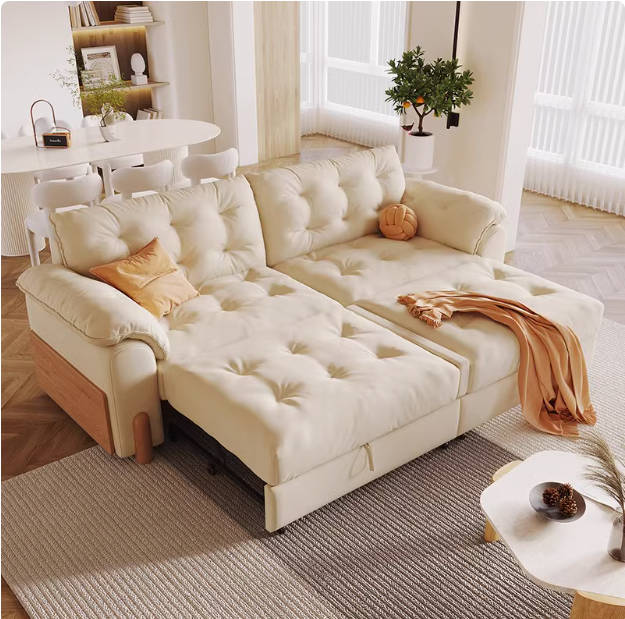日式原木奶油风沙发床可折叠两用2025新款小户型实木布艺云朵沙发