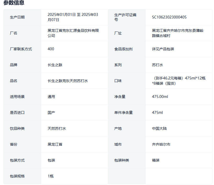 25年新日期8箱长生之脉天然弱碱性克东苏打水无糖小分子水饮用水
