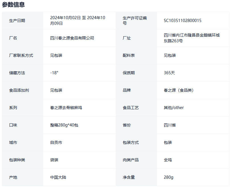 春之源去骨椒麻鸡整箱280克40包 红油麻辣手撕棒棒鸡藤椒口水鸡