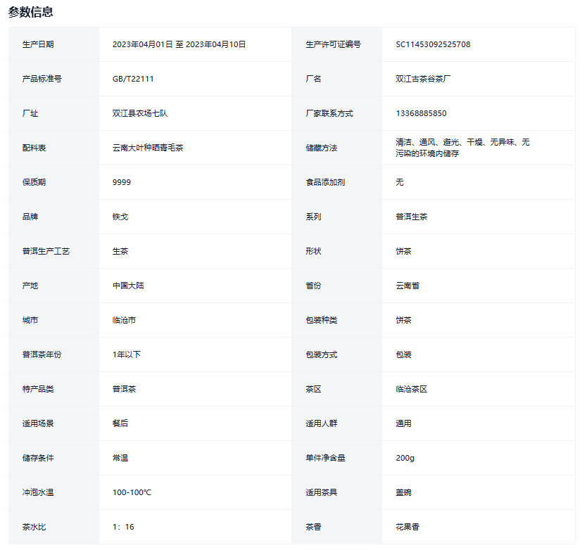 茶王地古树2023年春茶普洱茶生茶200克饼云南临沧铁戈制茶