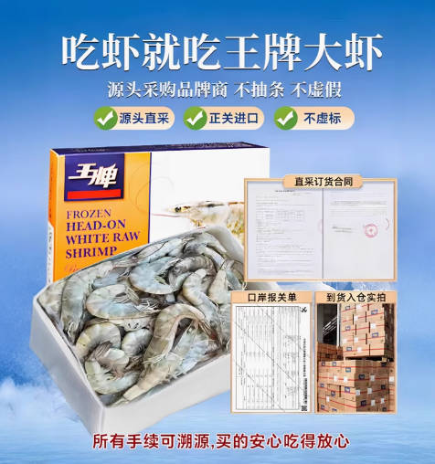 王牌水冻白虾大虾厄瓜多尔白虾30405060南美白对虾带头带壳包邮