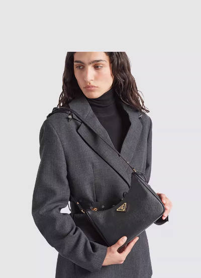 Prada普拉达女士Saffiano皮革迷你Hobo手袋腋下包