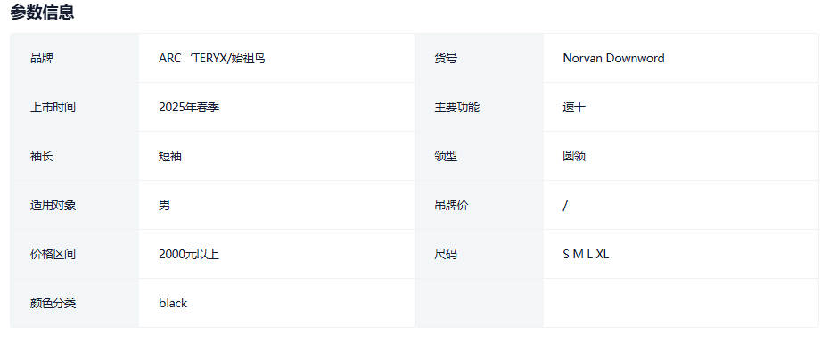ARC’TERYX 始祖鸟Norvan Downword男装圆领短袖透气吸湿T恤