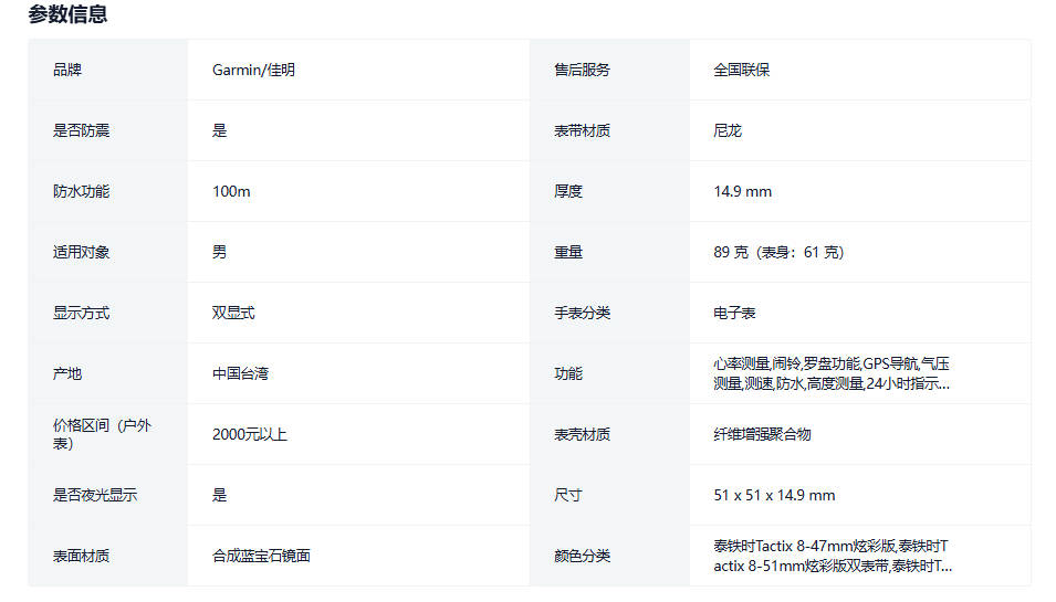 【新品】Garmin佳明Tactix 8泰铁时8全能战术户外运动腕表LED手电