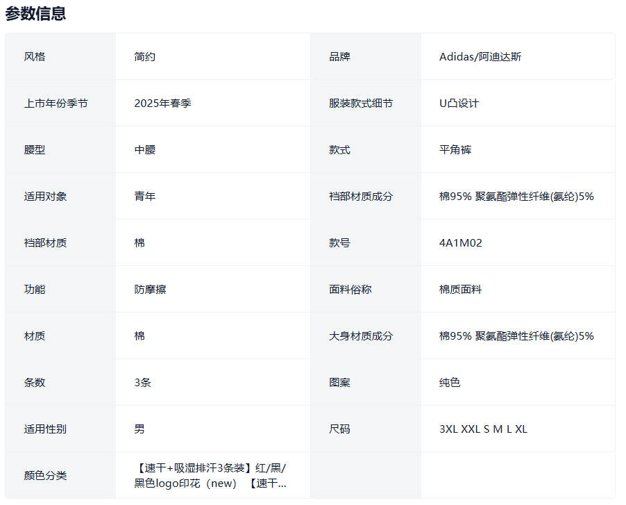Adidas阿迪达斯男士内裤新款运动吸湿排汗透气速干防摩擦四角短裤