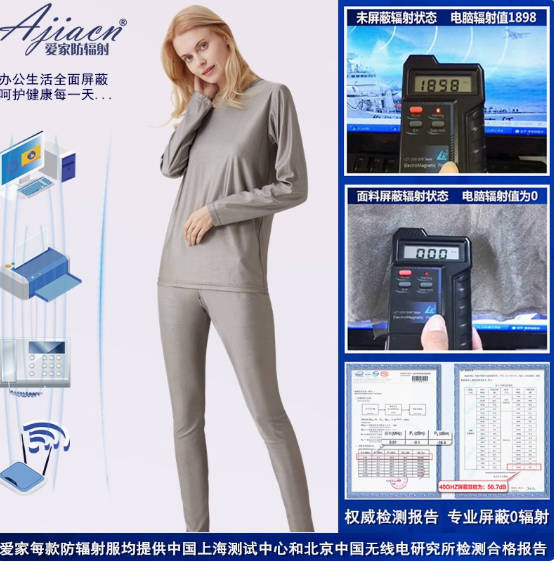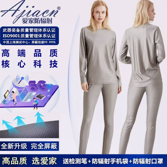 爱家防辐射服100%银纤维防5G高频辐射内衣长裤套装女