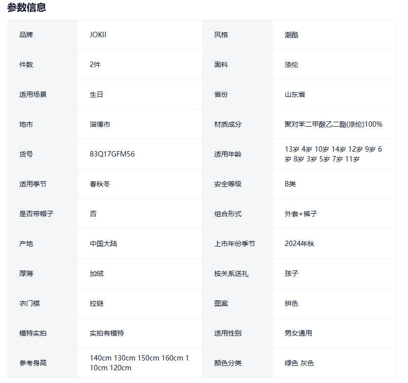 jokii潮牌童装『鲸鳞套装』男女童薄绒外套+长裤炸街春秋装