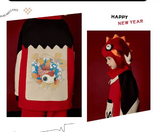 jokii潮牌童装『绥禧金鲤套装』儿童国潮卫衣+裤子洋气春装秋款