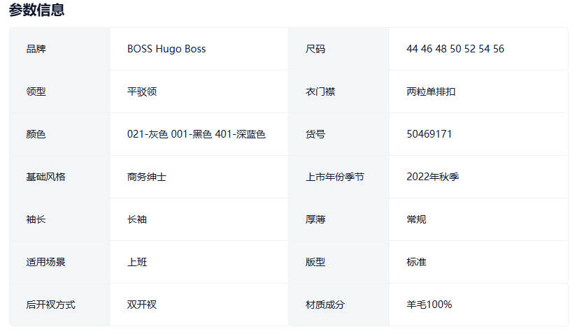 【贝克汉姆同款】HUGO BOSS男士衬里羊毛单排扣商务西装外套夹克