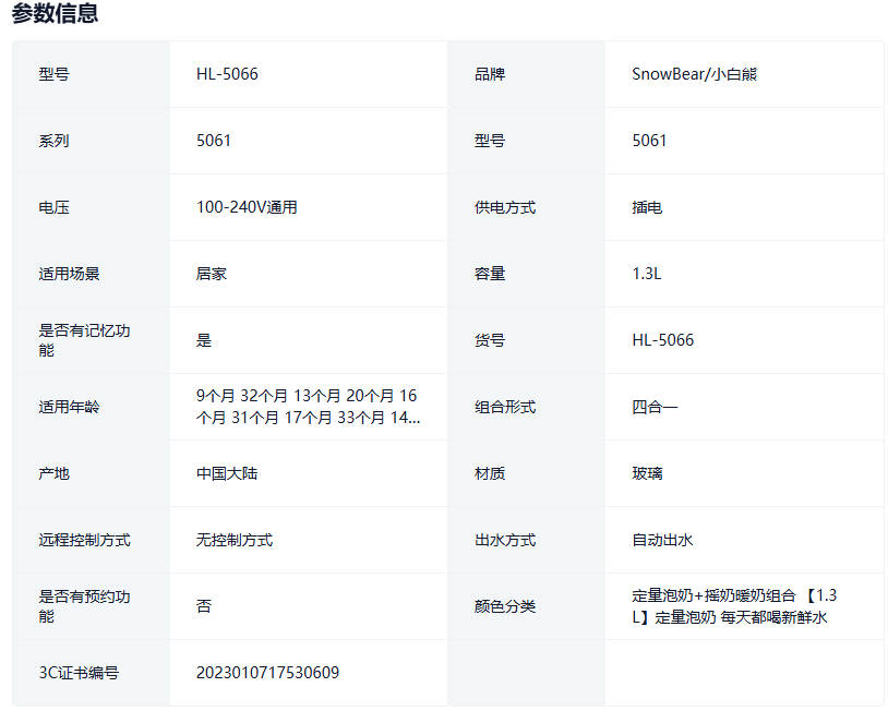 SnowBear小白熊恒温热水壶婴儿智能泡奶机定量出水冲奶专用调奶器