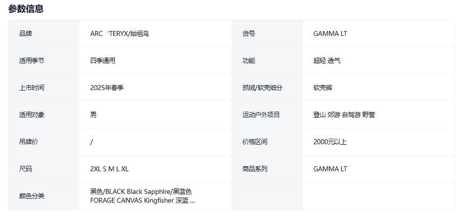 Arcteryx始祖鸟男款GAMMA LT轻量男耐磨休闲软壳裤休闲长裤