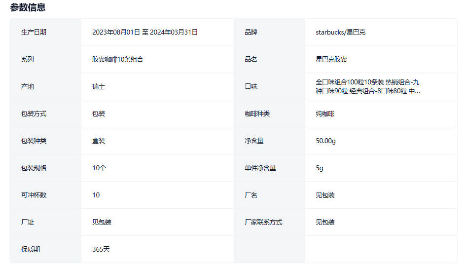 星巴克胶囊咖啡Nespresso十口味100粒适用奈斯派索雀巢小米咖啡机