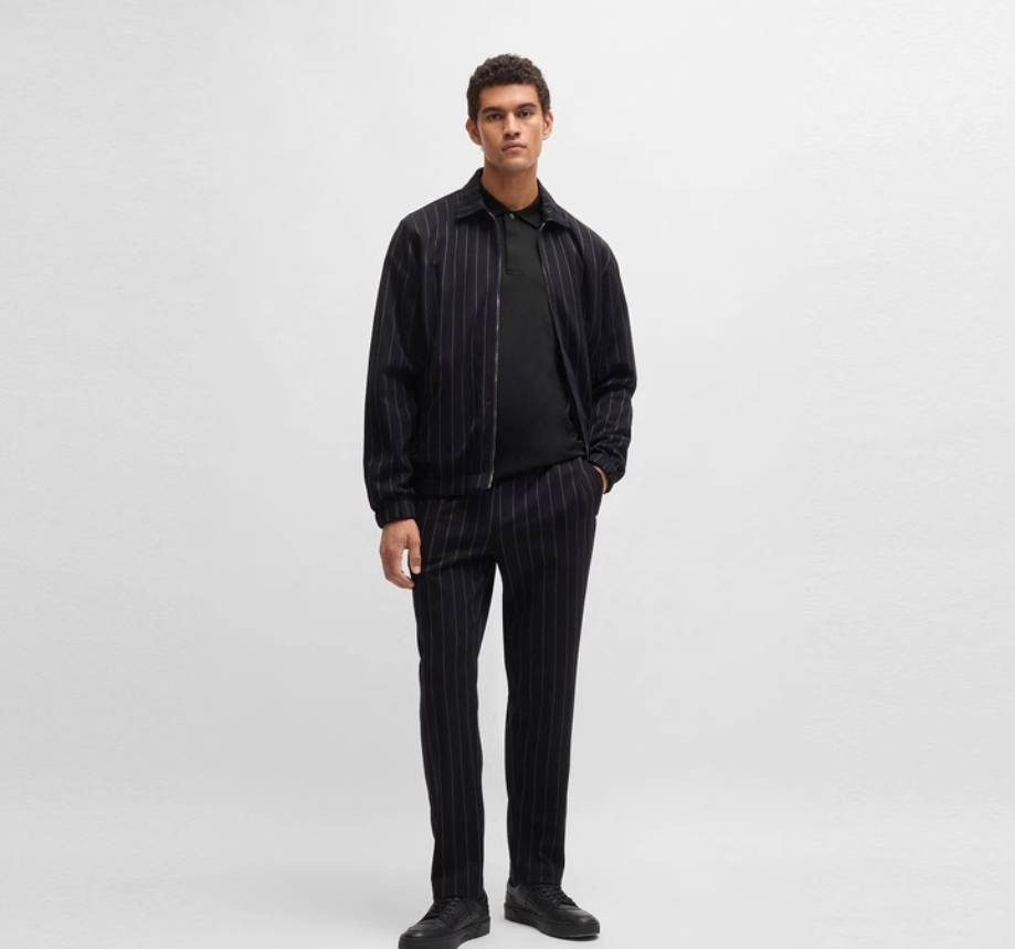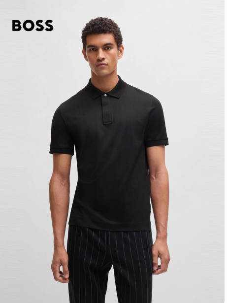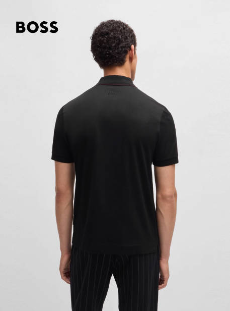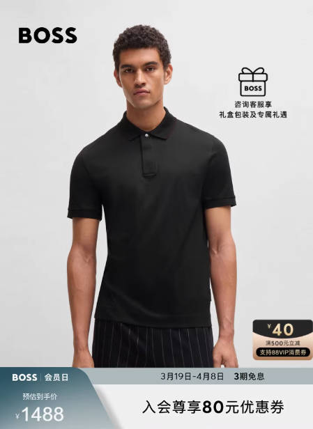 【保时捷联名】BOSS男士秋季尖领条纹商务休闲棉质提花Polo衫