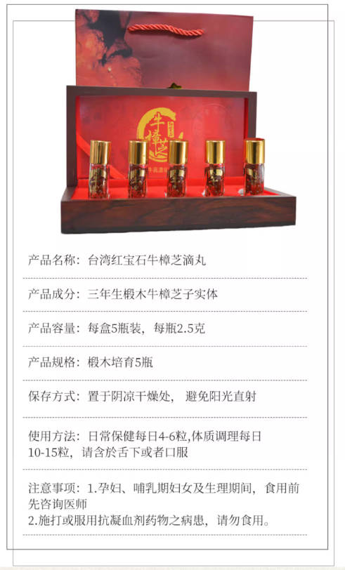 台湾牛樟芝红宝石5瓶高浓缩重症调理子实体纯椴木野生牛樟菇胶囊