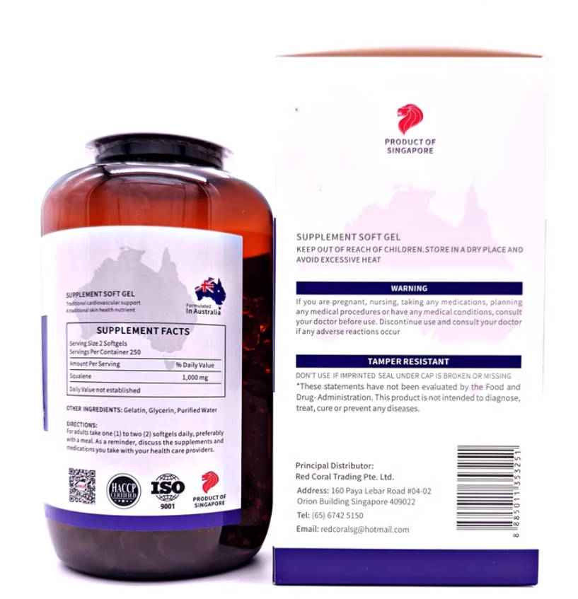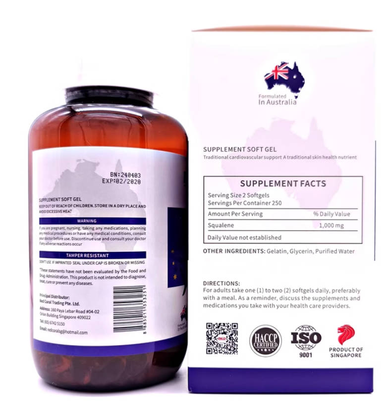 【官方正品 防伪可查】新加坡 角鲨烯 REDCORAL 深海鲨鱼 鱼肝油