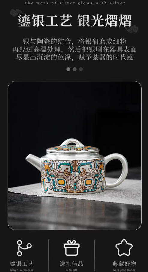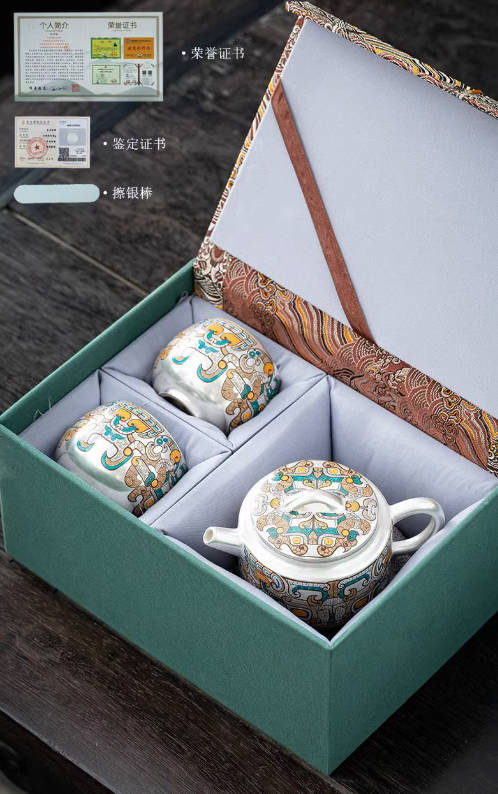 鎏银茶具银壶套装家用送礼办公室饕餮图腾一壶两杯茶杯茶壶一整套