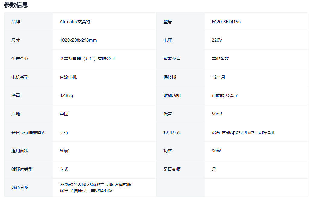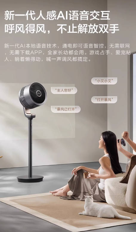 艾美特空气循环扇直流变频负离子电风扇语音遥控大风力落地扇新款