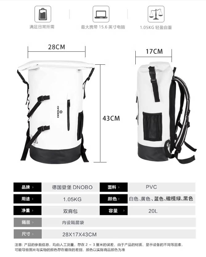 Dnobo防水双肩包20升男女户外冲浪漂流水上活动卷口旅行运动背包