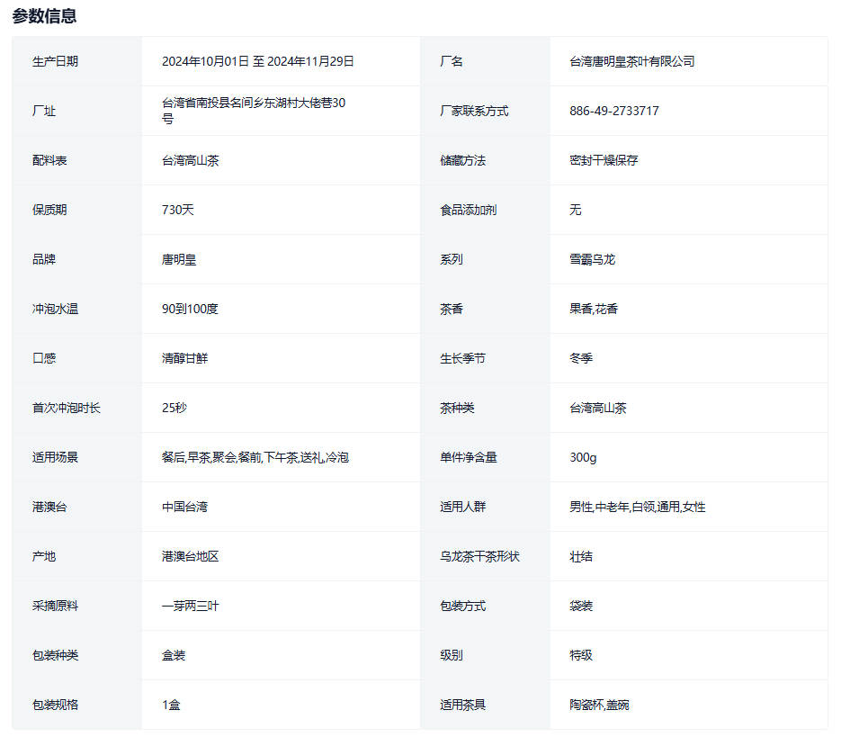 唐明皇雪霸乌龙茶 台湾高山茶冷泡高冷香冻顶乌龙原装礼盒清香
