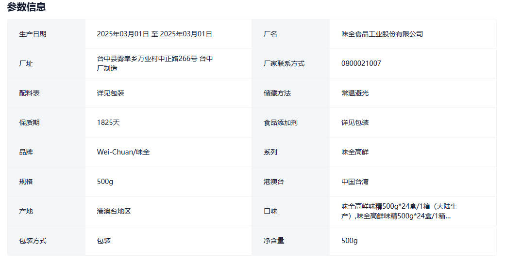 台湾原装进口Wei-Chuan味全高鲜味精素食调味料一整箱 500g24盒