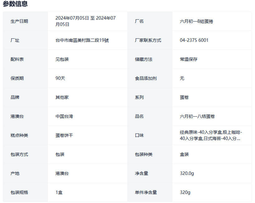 六月初一八结蛋卷全系列台湾产地直邮顺丰 酥性饼干