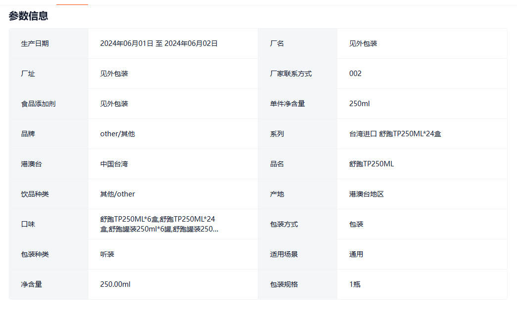 包邮 整箱出售 台湾进口 舒跑纸盒装丶罐装250ML24罐