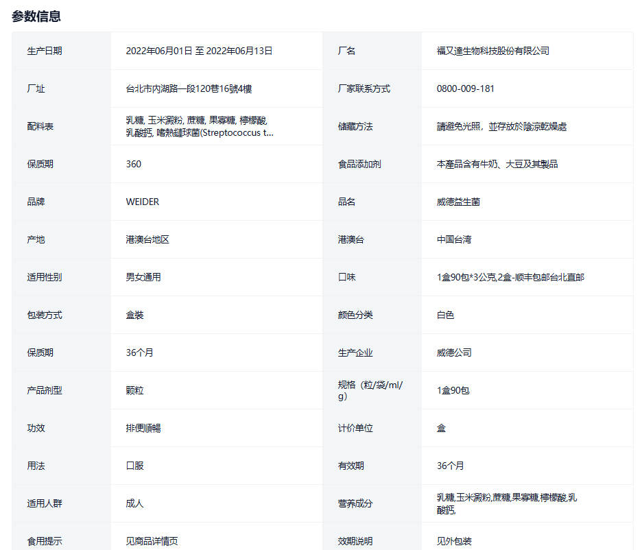 包邮顺丰快递台北直邮WEIDER威德健康益生菌颗粒