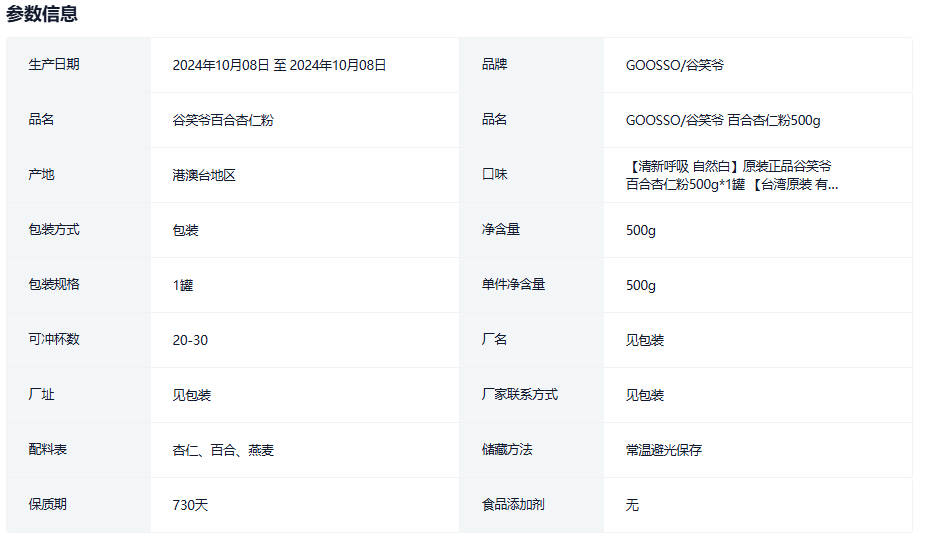 台湾原装谷笑爷百合杏仁粉无添加杏仁茶南杏仁营养早餐即食冲饮品