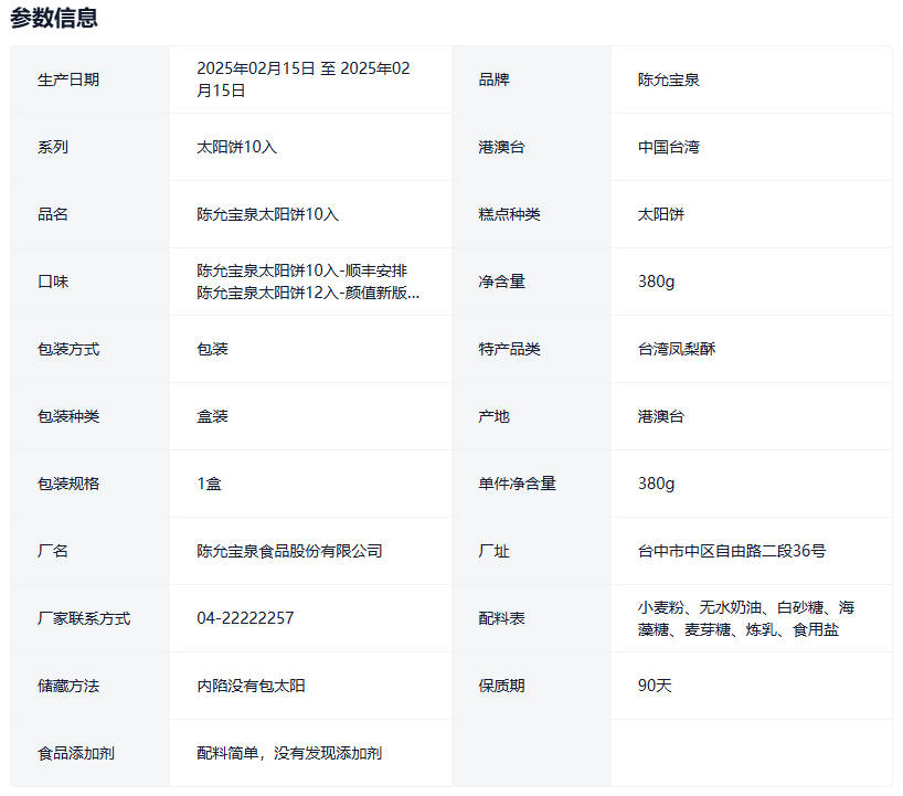 台湾原装特产百年陈允宝泉获奖太阳饼10入法国奶油糕点心茶配酥饼