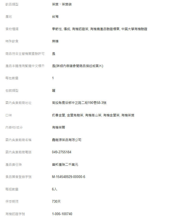 传统有机金萱乌龙茶叶6入组 (100g入)-共600g附提袋杉林溪有机认证茶高山茶有机农产品