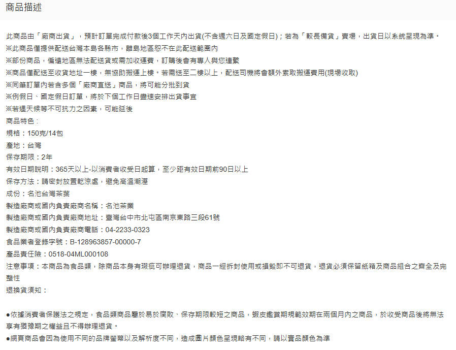 名池茶业 蜜果香甜手采梨山金萱乌龙茶叶(150gx14) 厂商直送