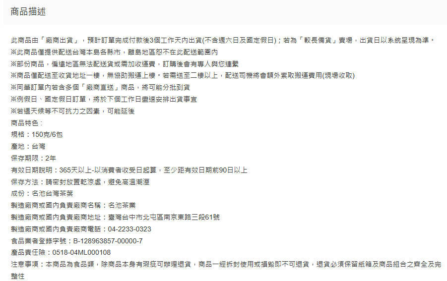 名池茶业 独品奶香台湾金萱乌龙茶叶(150g x6) 厂商直送