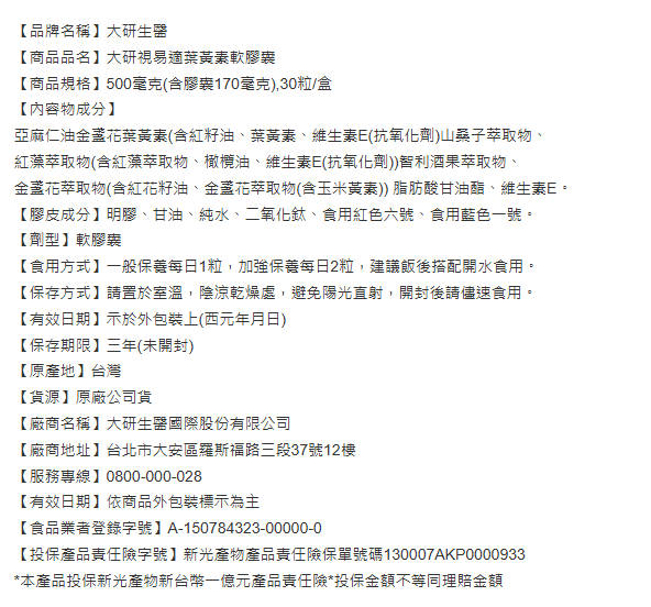❮大研生医❯视易适叶黄素x9盒(30粒盒)